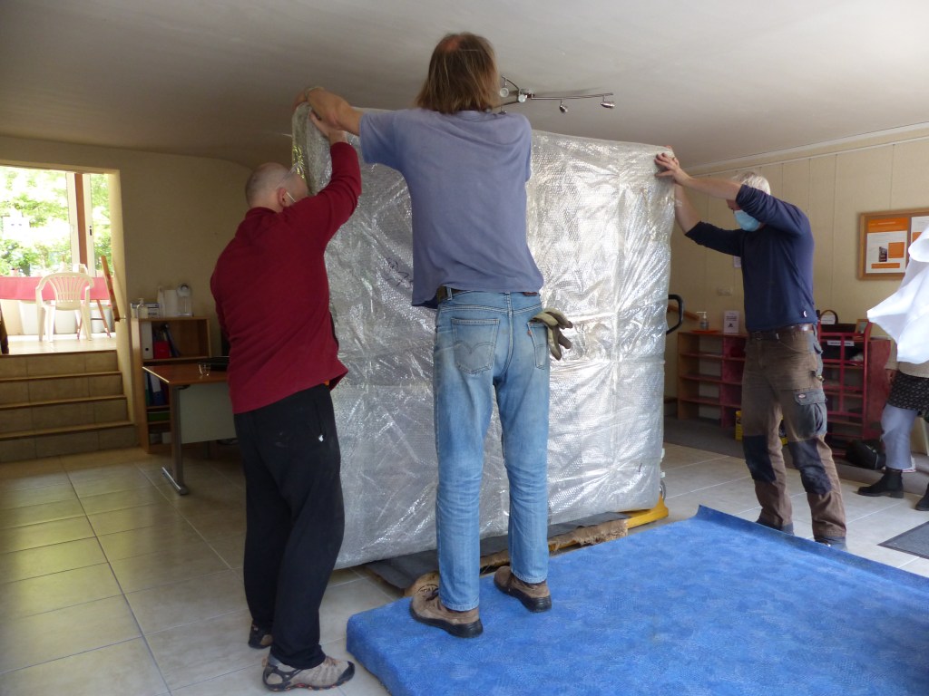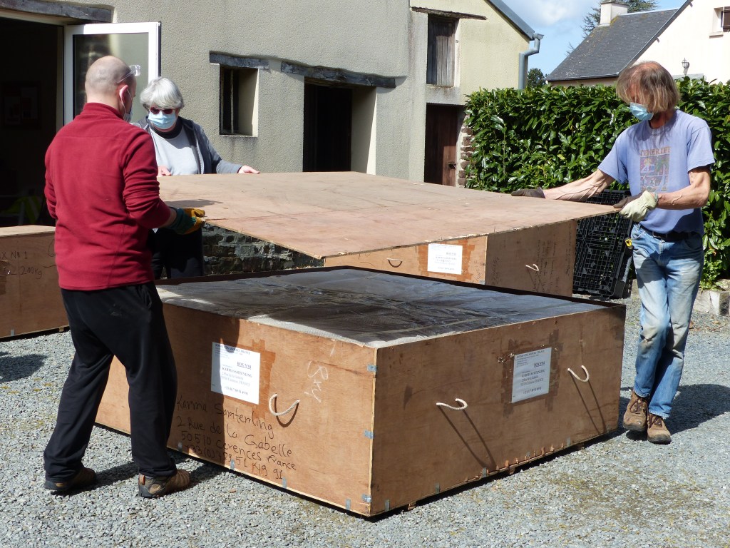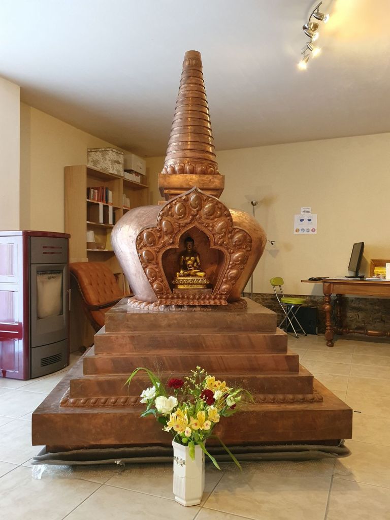Le stoupa est arrivé au Centre vendredi 7 mai en fin de matinée. Une étape importante, concrète et enthousiasmante de ce projet.
