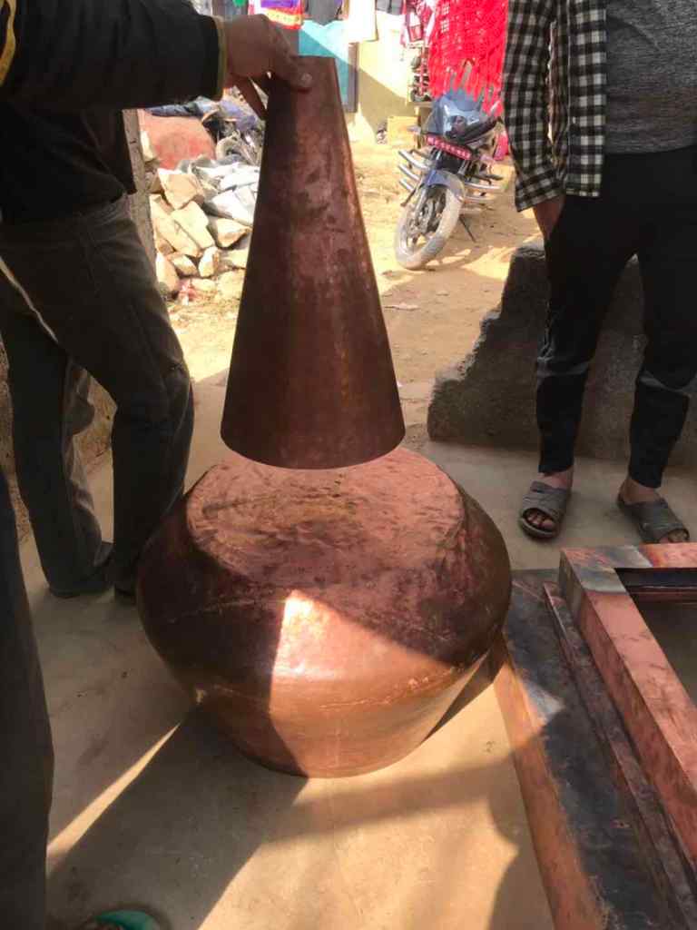 Le stoupa étant à l’intérieur, Lama Teunsang a suggéré un stoupa en cuivre, qu’il a lui-même commandé au Népal au mois de juin 2018. Pour des raisons objectives de hauteur de construction du bâtiment et d’intégration dans le bourg, après discussion avec Lama Teunsang, nous avons opté pour un stoupa de 3 mètres de haut.