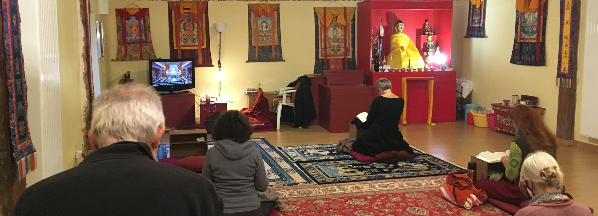 Le Jardin de la Méditation ouvre son espace de pratique pour la récitation des prières d’aspiration. Reliés au monastère de Kundreul Ling en Auvergne, ainsi qu’aux autres communautés de la lignée, les sessions seront retransmises sur écran dans le temple. Cette pratique des souhaits, à la fois soutenante et inspirante, peut être suivie quelques heures, une ou plusieurs journées, ou le programme complet en fonction de vos disponibilités.