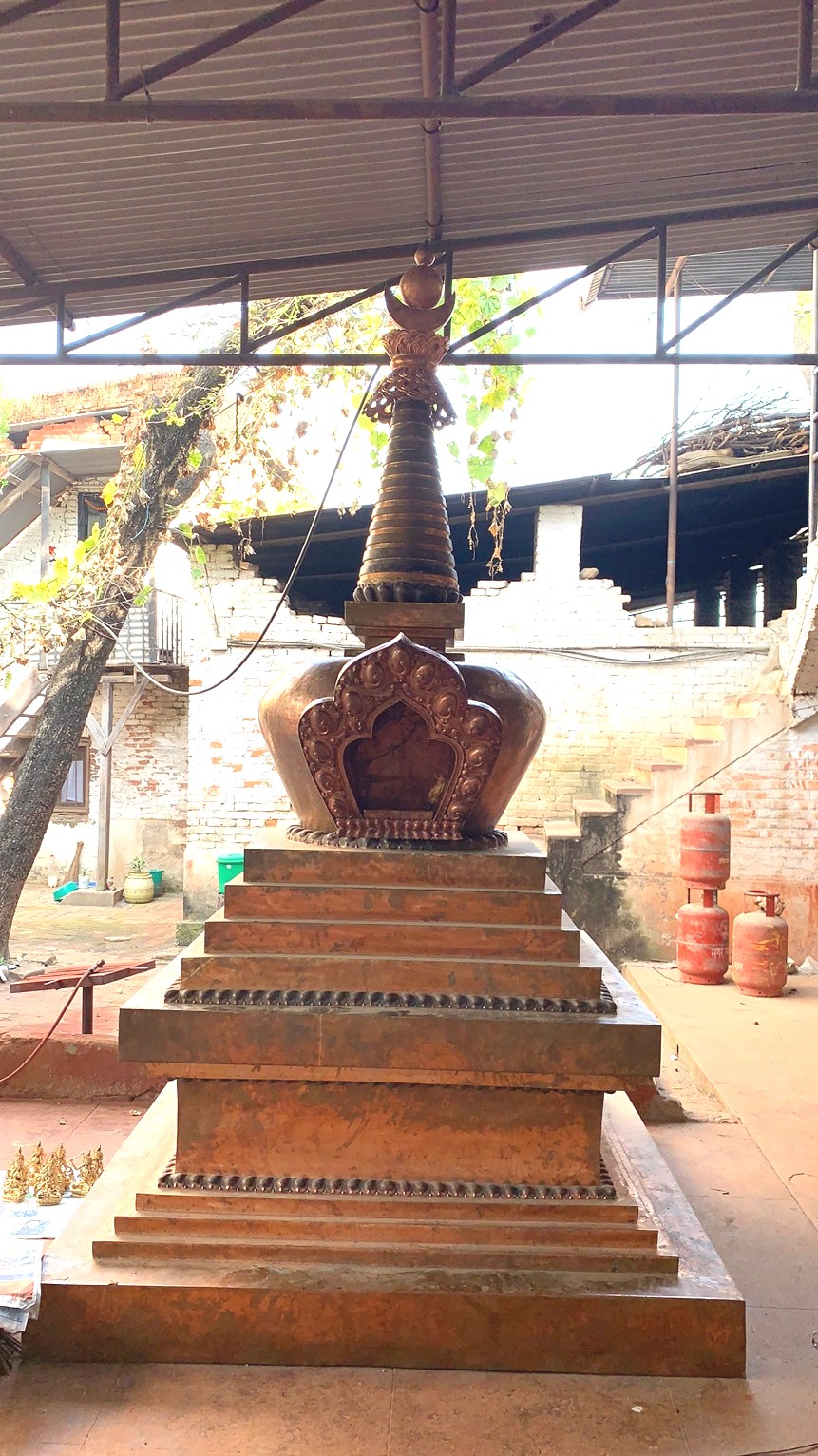 Un stoupa n’est pas seulement un monument. C’est aussi un support de pratique et, en tant que tel, il renferme des représentations du corps (statues), de la parole (mantras et enseignements) et de l’esprit (mandalas) du Bouddha. Étant lui-même une offrande, il contient également de nombreuses substances précieuses.