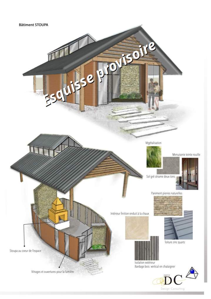 entre 240 000€ et 300 000€, Comprenant le stoupa et son remplissage, la construction du bâtiment et des aménagements extérieurs, l’achat du terrain.
